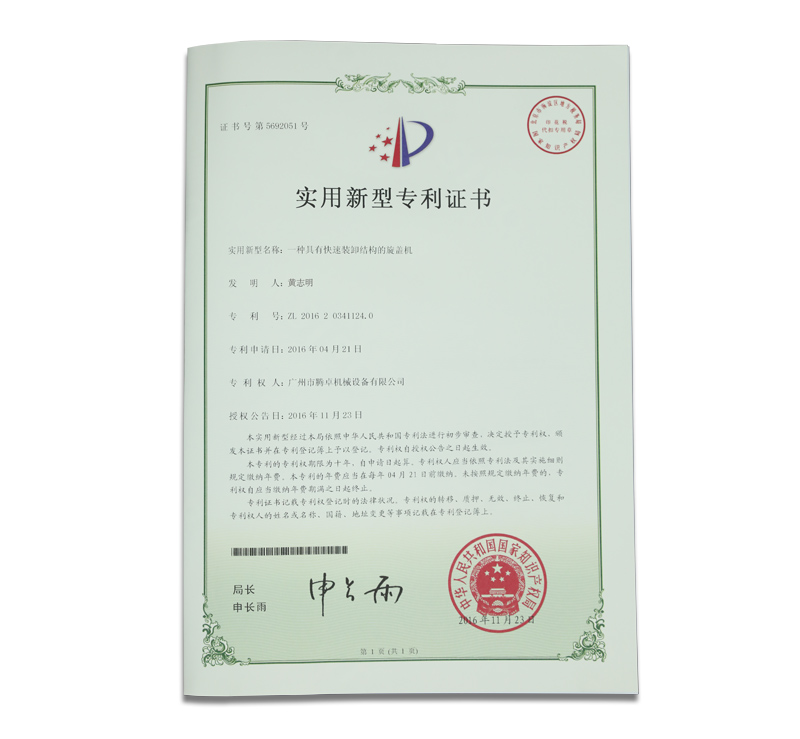 騰卓機(jī)械專(zhuān)利生產(chǎn)證書(shū),專(zhuān)業(yè)制造包裝設(shè)備的生產(chǎn)廠家,全自動(dòng)及半自動(dòng)的洗瓶機(jī),烘干機(jī),灌裝機(jī),旋蓋機(jī),貼標(biāo)機(jī),套標(biāo)機(jī),打碼機(jī)等非標(biāo)定制自動(dòng)化包裝生產(chǎn)線