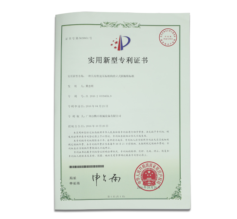 非標(biāo)定制自動化包裝生產(chǎn)線證書
